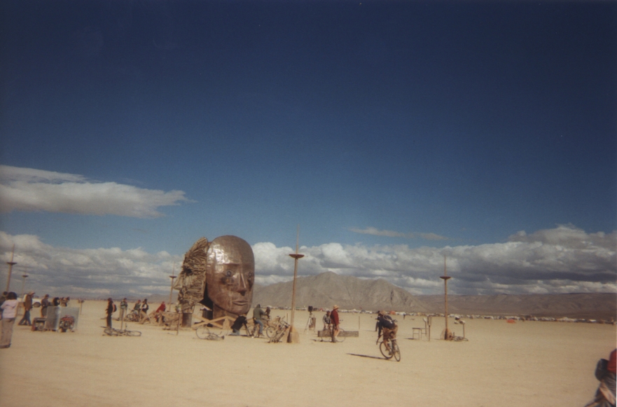 On Sunday, September 3, 2000, I watched the sun rise while I was sitting outside our tent in the place that is temporarily Black Rock City, Nevada every year. Hours before, the Man had been burnt, and I had spent the rest of the night exploring the amazing art in the "city". The sun cast its orange rays on the clouds causing them to shimmer and burst with life. In my purely sleep-deprived state, the shimmering clouds seemed to turn into mermaids that turned into fish that turned into swans that turned into dragons that turned into butterflies that I could almost reach out and touch. Behind me, the Black Rock mountains seemed to form a huge tent and slowly billow over the high desert (or "playa") covering all the tents that comprised Black Rock City. That is just a taste of one of the most surreal and psychedelic experiences I've been through in my life.